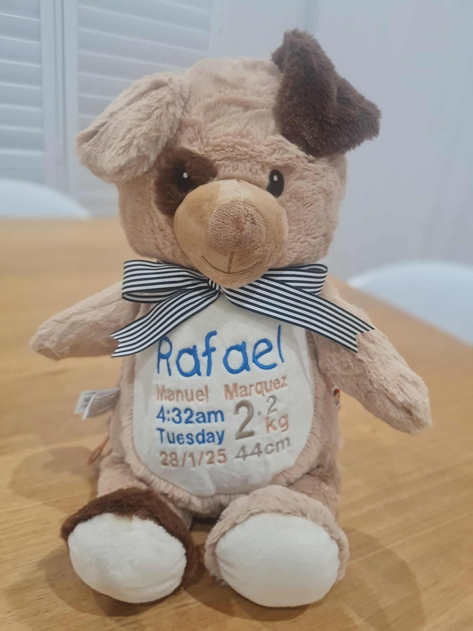 NEW Patch Dog– $65.00 (includes full birth details embroidery or personalised message).