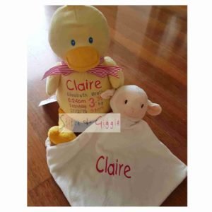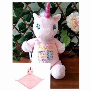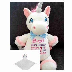Includes full birth details or special occasion message to animal and single name on blanket