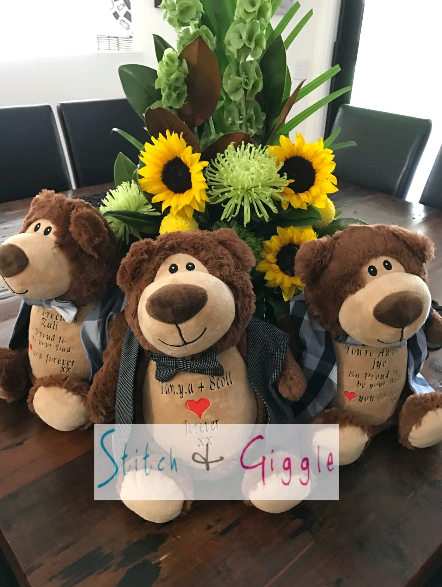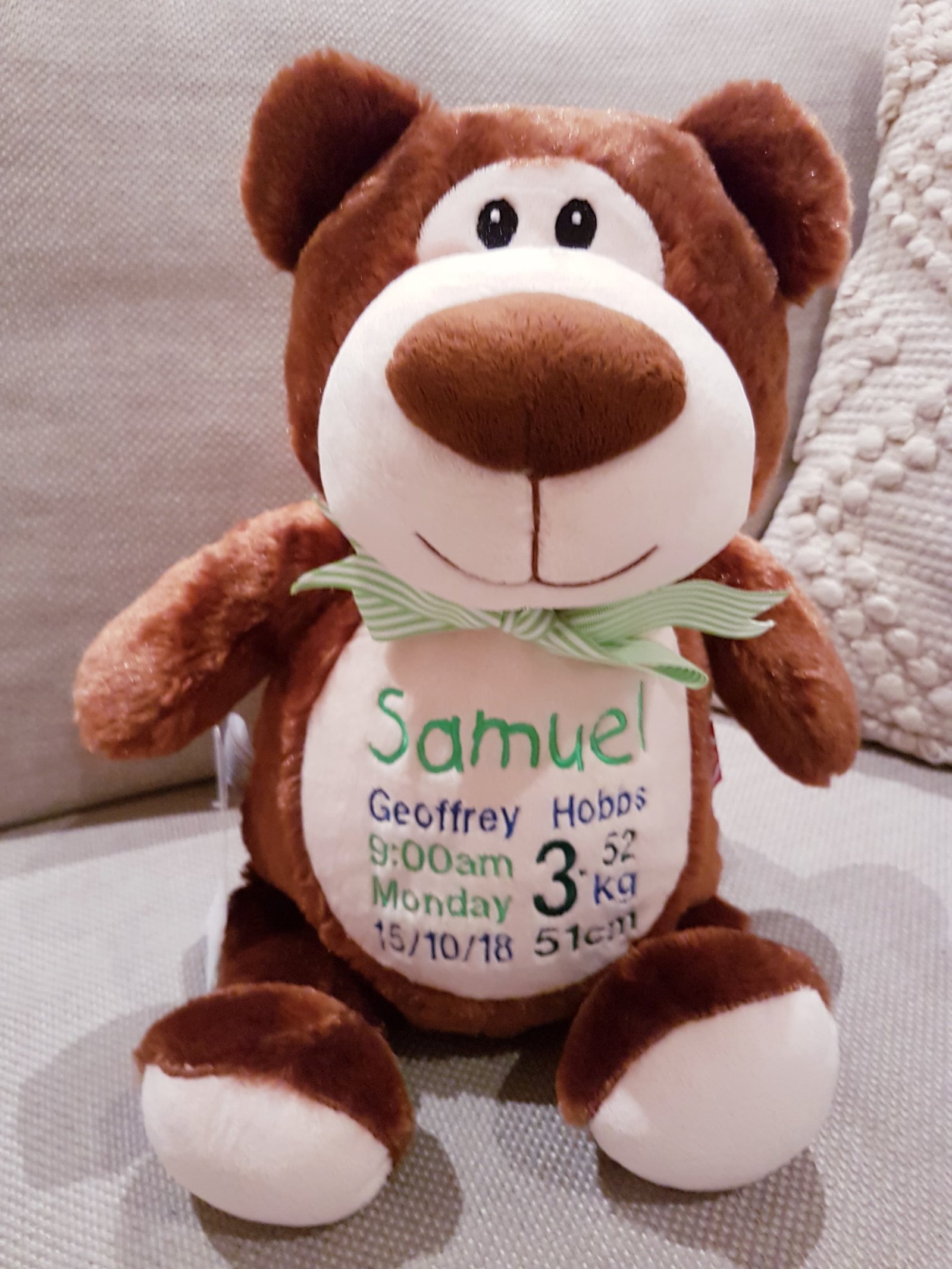 Brown Bear + Security Blanket Combo-$85.00 (Includes full birth details or special occasion message to animal and single name to security blanket). Postage $12.