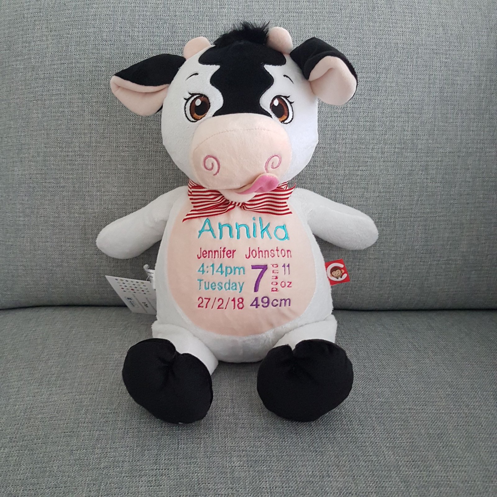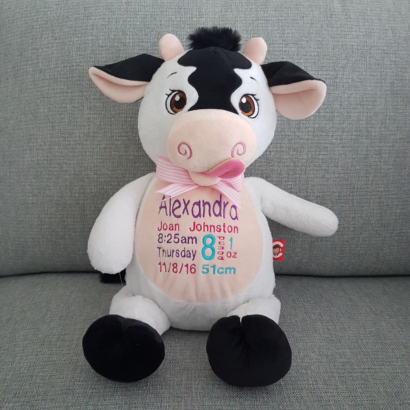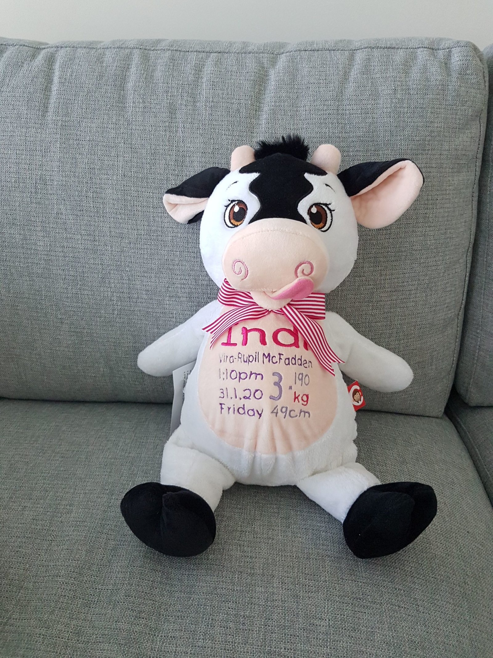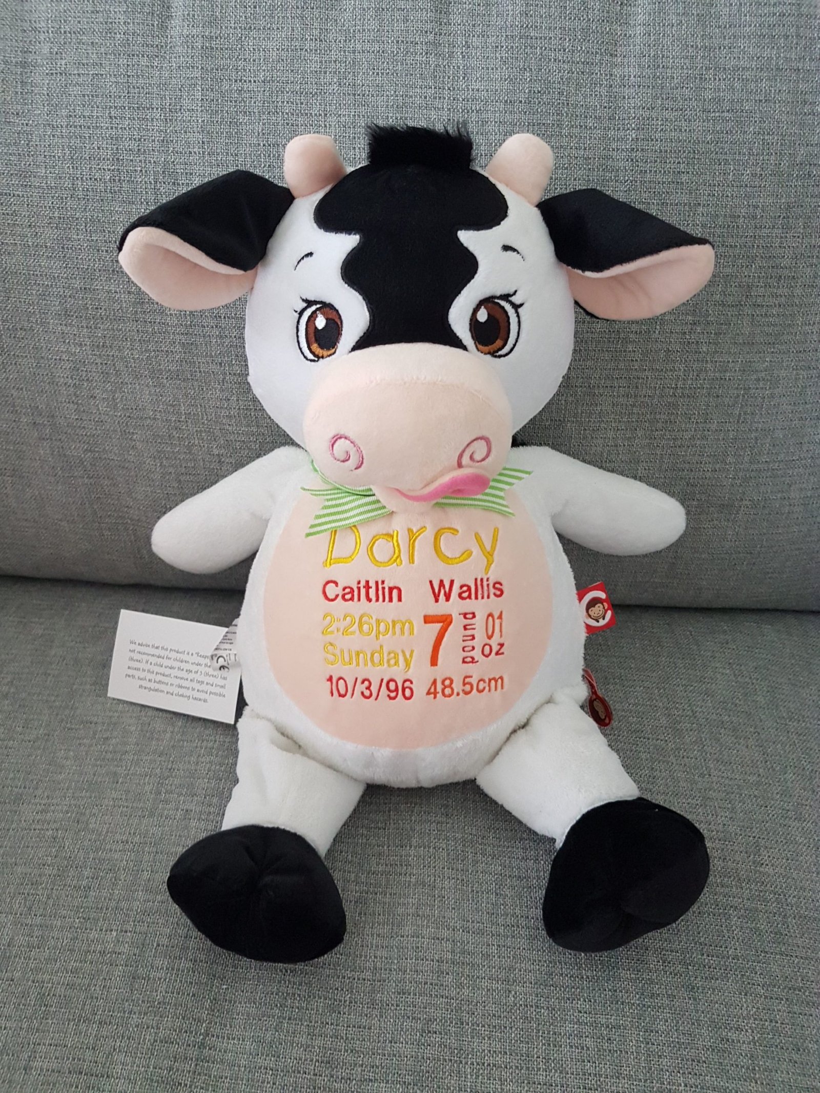 Cow-$65.00 (includes full birth details embroidery or personalised message).