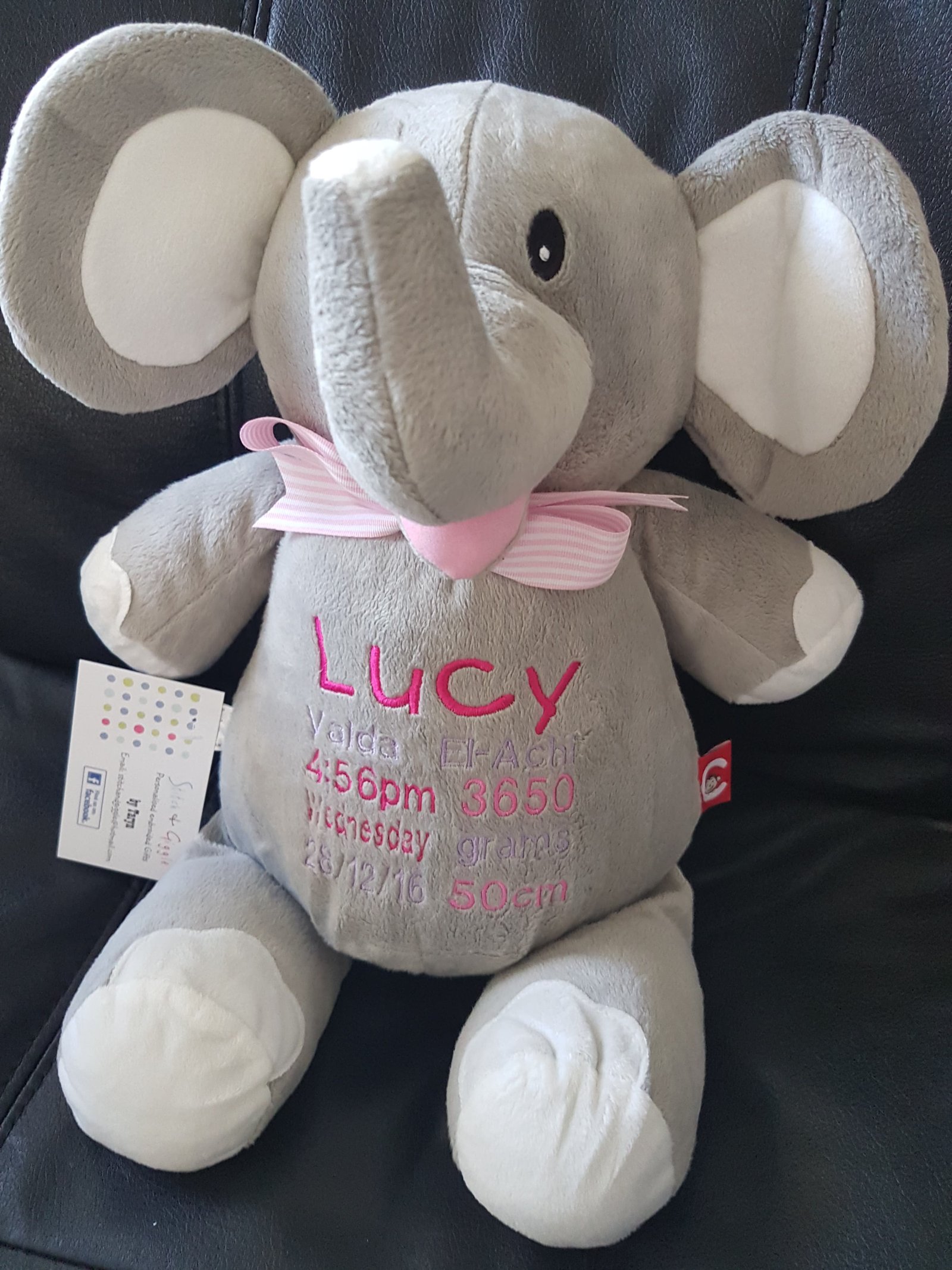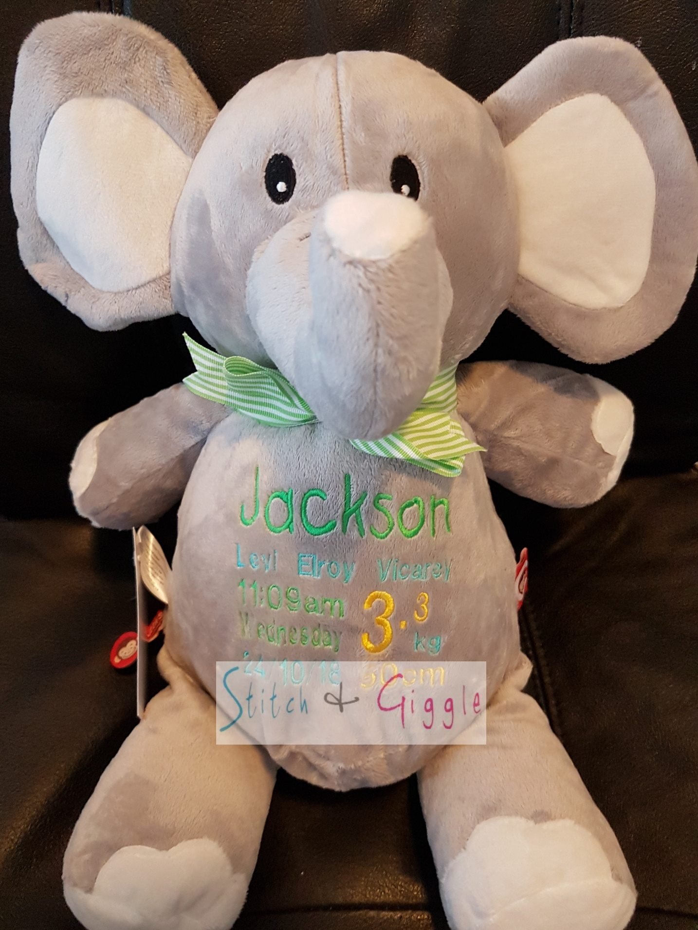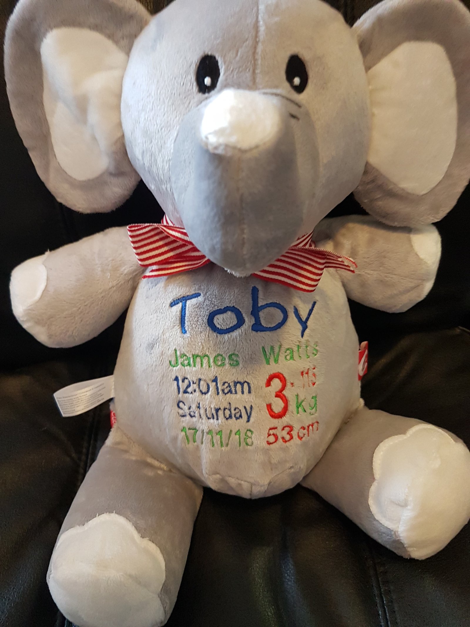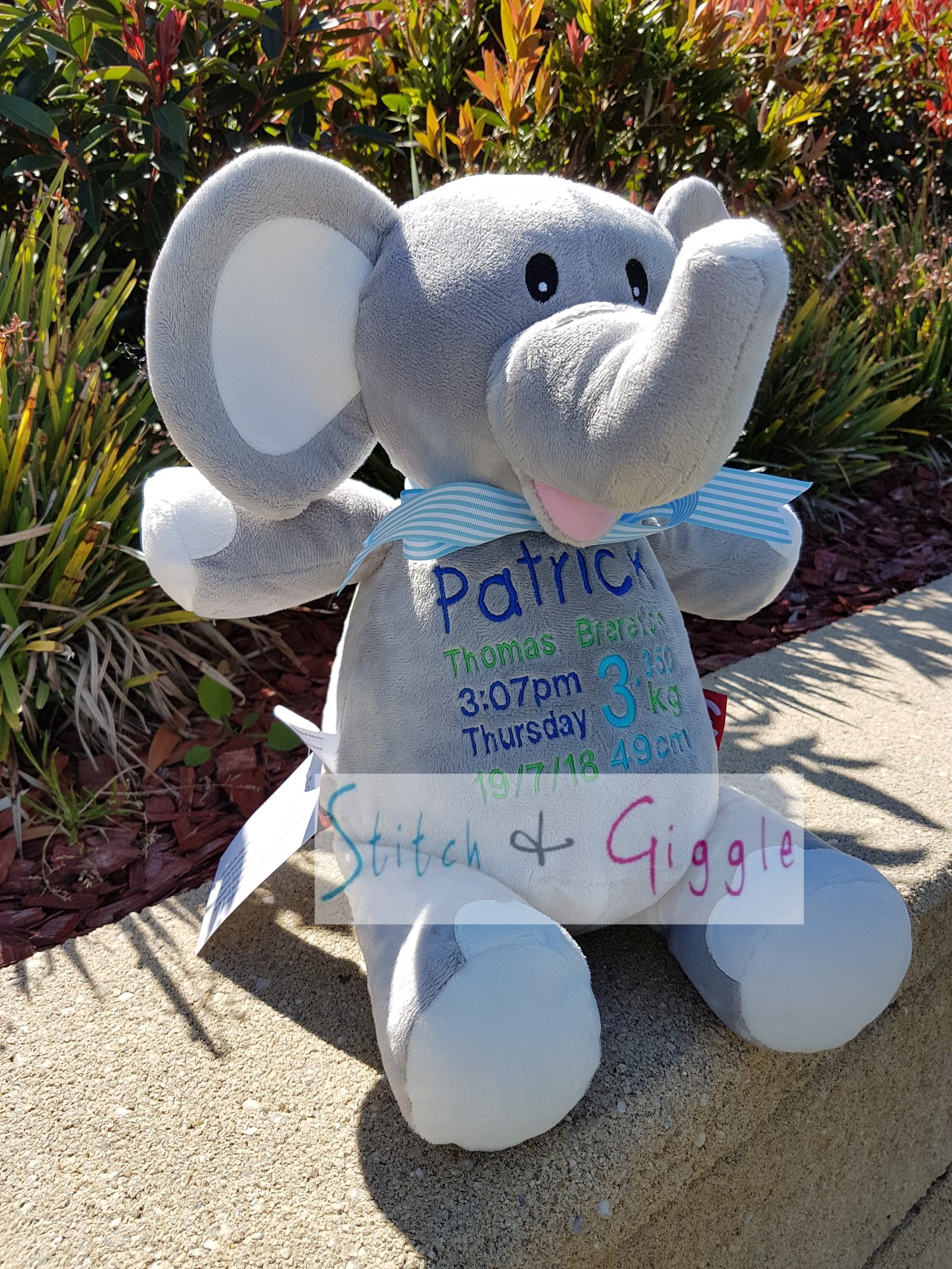 Elephant+ Security Blanket Combo– $85.00 (Includes full birth details or special occasion message to animal and single name to security blanket). Postage $12.