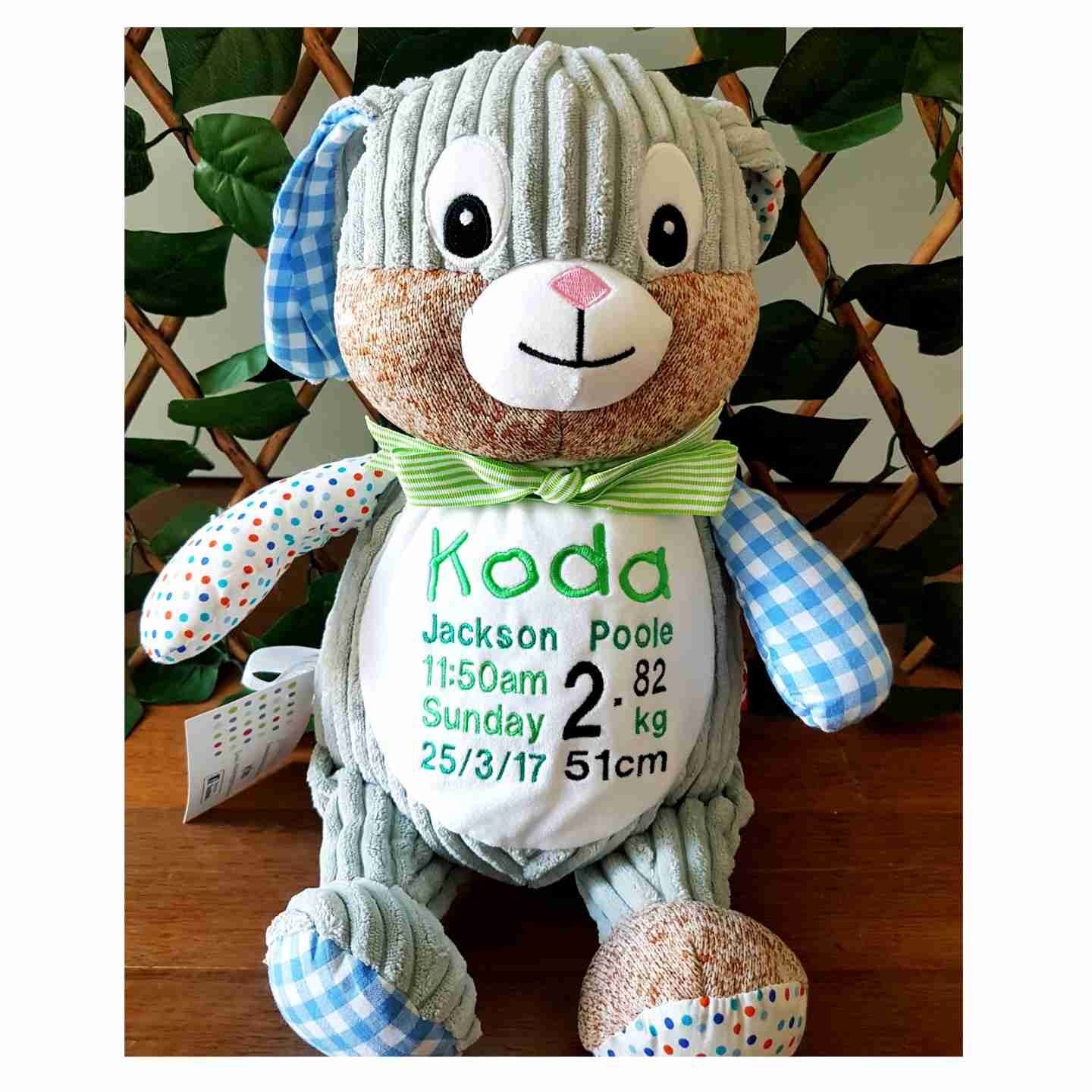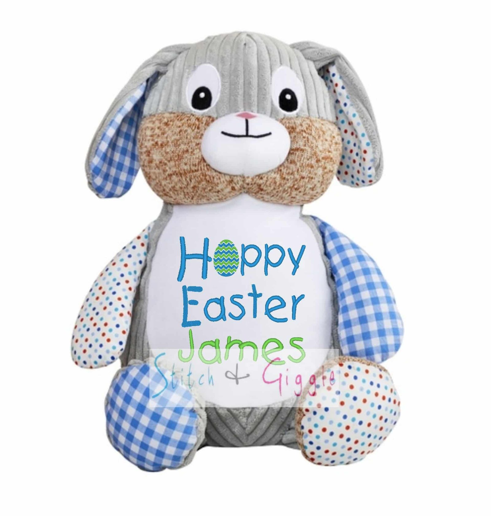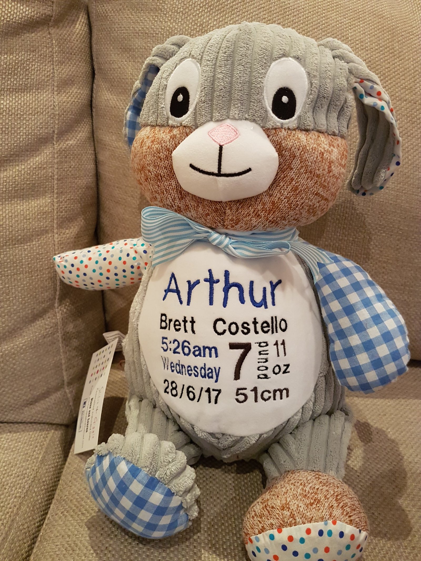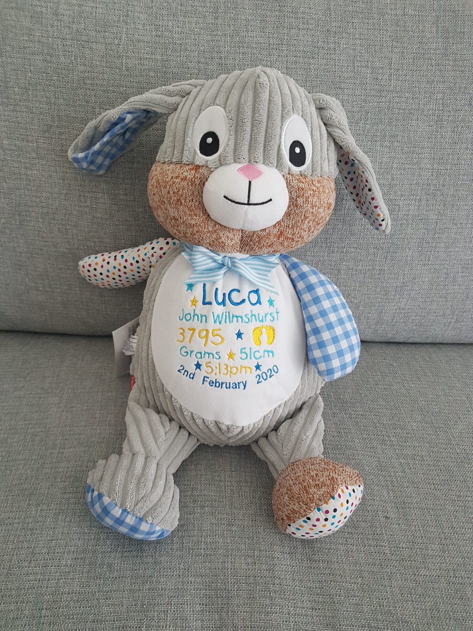 Harlequin Blue Bunny -$65.00 (includes full birth details embroidery or personalised message).