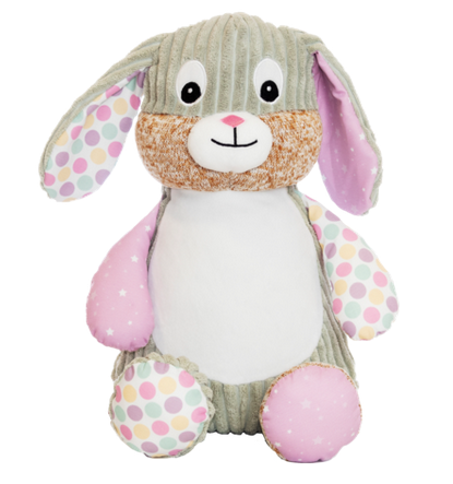 Harlequin Bubblegum Bunny- Sensory Ears-$65.00 (includes full birth details embroidery or personalised message).