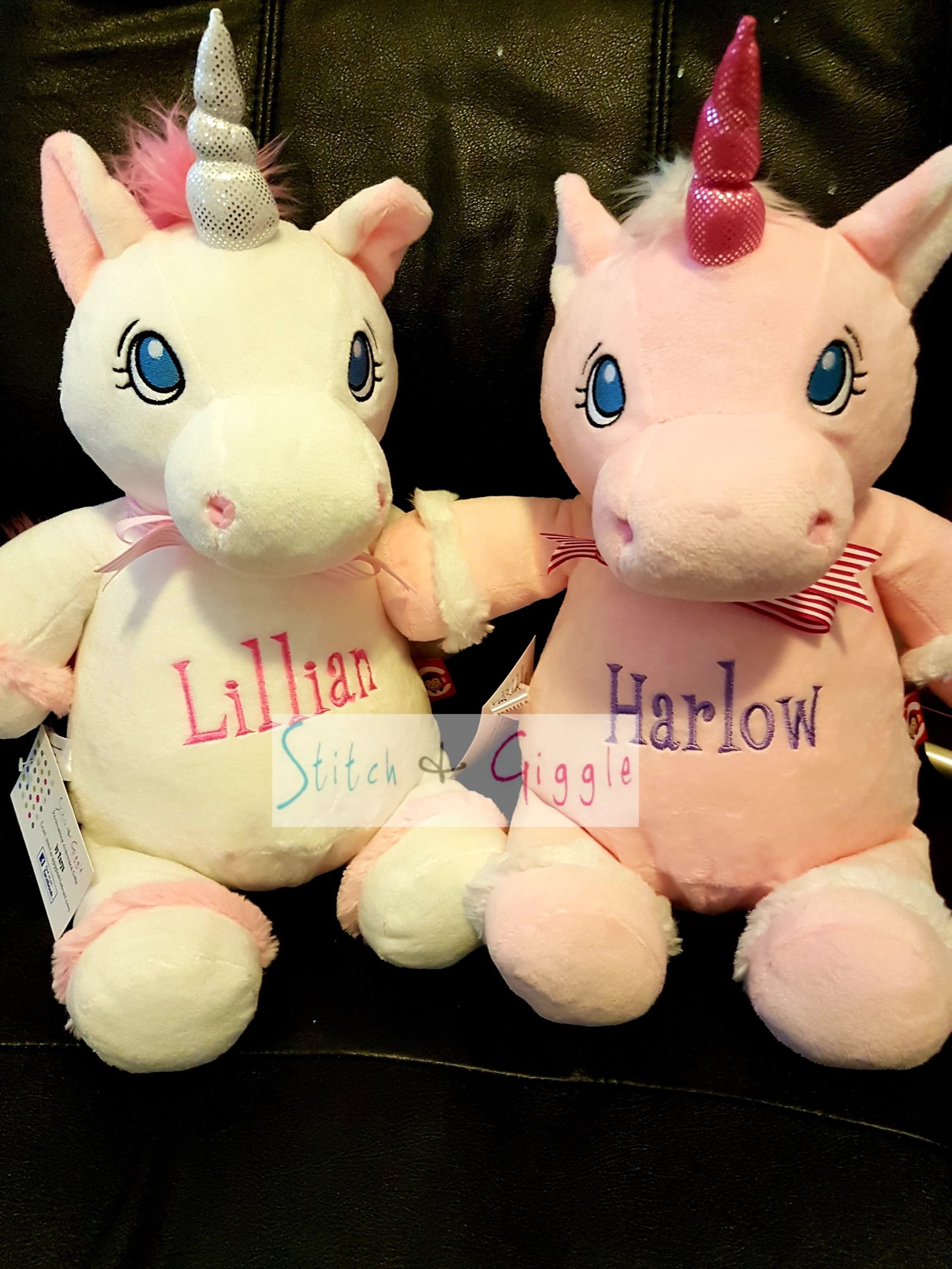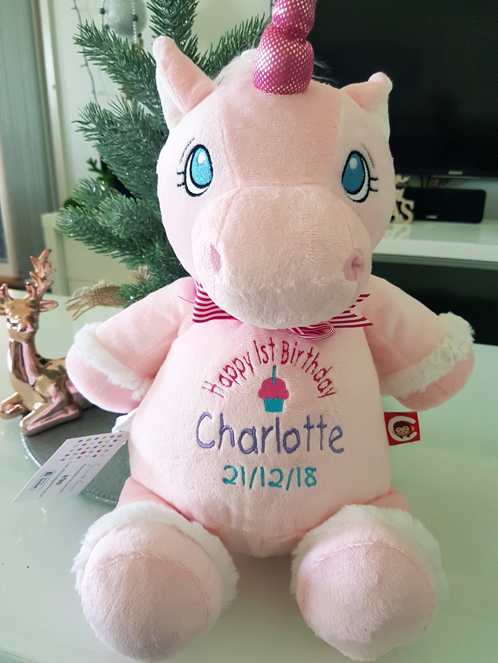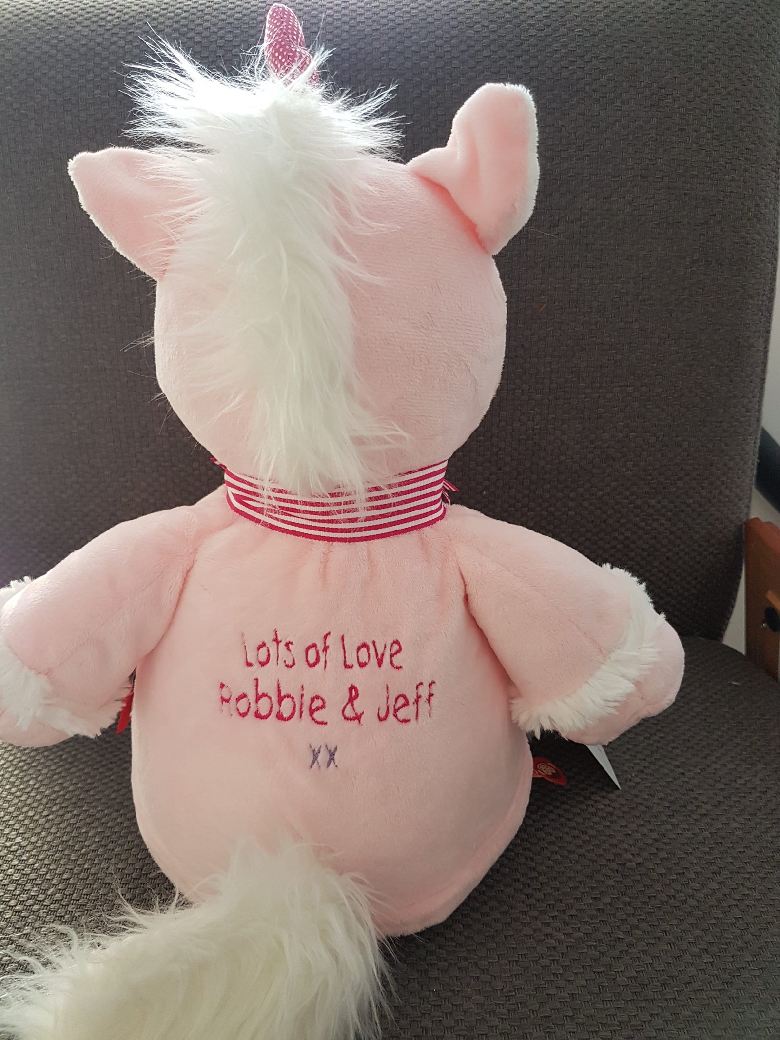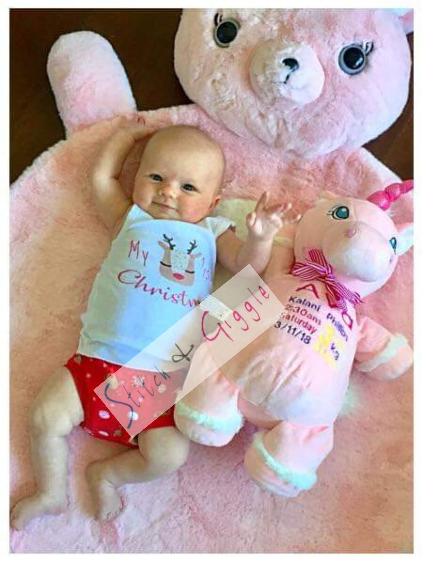 Pink Unicorn-$65.00 (includes full birth details embroidery or personalised message).